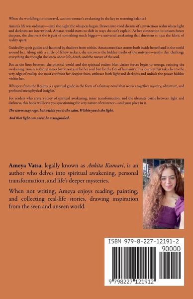 When the world begins to unravel, can one woman's awakening be the key to restoring balance? Amara's life was ordinary-until the night the whispers began. Drawn into vivid dreams of a mysterious realm where light and darkness are intertwined, Amara's world starts to shift in ways she can't explain. As her connection to unseen forces deepens, she discovers she is part of something much bigger-a universal awakening that threatens to tear the fabric of reality apart. Guided by spirit guides and haunted by shadows from within, Amara must face storms both inside herself and in the world around her. Along with a circle of fellow seekers, she uncovers the hidden truths of the universe-truths that challenge everything she thought she knew about life, death, and the nature of the soul. But as the lines between the physical world and the spiritual realms blur, darker forces begin to emerge, resisting the awakening. Amara is thrust into a battle not just for her soul but for the fate of humanity. In a journey that takes her to the very edge of reality, she must confront her deepest fears, embrace both light and darkness and unlock the power hidden within her. Whispers from the Realms is a spiritual guide in the form of a fantasy novel that weaves together mystery, adventure, and profound metaphysical insights. For readers who crave a story of spiritual awakening, inner transformation, and the ultimate battle between light and darkness, this book will leave you questioning the very nature of existence-and your place in it. The storm may rage, but within you is the calm. Within you is the light. And that light can never be extinguished.