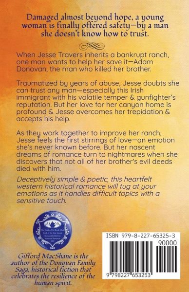 Damaged almost beyond hope, a young woman is offered safety-by the man who killed her brother. 1880s Arizona Territory: Shunned by the village for her outlaw brother's deeds, Jesse is not sorry to hear he's been killed while robbing a bank. Strangely enough it's Adam Donovan, the man who shot him, who brings her the news. Even more strange is this newcomer's offer to help put her ranch back on solid footing. Traumatized by years of abuse, Jesse doubts she can trust any man-especially this Irish immigrant with his volatile temper and gunfighter's reputation. But a profound love for her canyon…mehr
