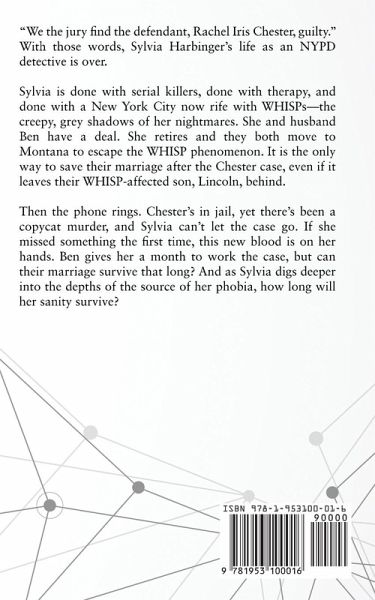 "We the jury find the defendant, Rachel Iris Chester, guilty." With those words, Sylvia Harbinger's life as an NYPD detective is over. Sylvia is done with serial killers, done with therapy, and done with a New York City now rife with WHISPs-the creepy, grey shadows of her nightmares. She and husband Ben have a deal. She retires and they both move to Montana to escape the WHISP phenomenon. It is the only way to save their marriage after the Chester case, even if it leaves their WHISP-affected son, Lincoln, behind. Then the phone rings. Chester's in jail, yet there's been a copycat murder, and Sylvia can't let the case go. If she missed something the first time, this new blood is on her hands. Ben gives her a month to work the case, but can their marriage survive that long? And as Sylvia digs deeper into the depths of the source of her phobia, how long will her sanity survive?