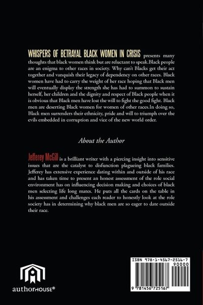 Whispers of Betrayal Black Women in Crisis presents many thoughts that black women think but are reluctant to speak.Black people are an enigma to other races in society. Why can't Blacks get their act together and vanquish their legacy of dependency on other races. Black women have had to carry the weight of her race hoping that Black men will eventually display the strength she has had to summon to sustain herself, her children and the dignity and respect of Black people when it is obvious that Black men have lost the will to fight the good fight. Black men are deserting Black women for women of other races.In doing so, Black men surrenders their ethnicity, pride and will to triumph over the evils embedded in corruption and vice of the new world order.