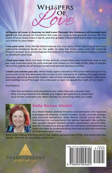 Whispers of Love: A Journey to Self-Love Through the Guidance of Animals and Spirit has the power to transform the way you look at the animals in your life, the reach of your loved ones in Spirit, and the greater influence of every step that guides you home to your heart. I see your soul. Kelly Renee Vizzini shares the true story of her learning to face and overcome whatever lands on her path, to hear her inner voice over the external noise to accept, love, and integrate the lessons to take the courageous steps forward to transform and heal. I feel your love. With the help of the animal companions who find their way to her pet care business and the wild animals she meets on the trails of life, Kelly is taught about the subtle art of loving herself and animal communication. I meet you where you are. When Kelly opens herself to the unconditional love that surrounds us all, she discovers she is very much not alone in walking through health journeys, learning about the higher view of love and death, being present with grief, and leading herself through the unknown to learn to speak the truth of her heart. You'll learn: · How the emotions and sensations you often feel are not your own · Why moving beyond the details to a higher perspective is important · Your innate strengths are often the key to unlocking what you seek