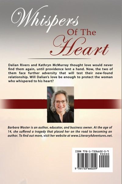 Kat is an author still reeling from the loss of her husband. Hoping to find peace and a fresh perspective, she books a vacation at a dude ranch-never expecting it to belong to Dalian, a widowed rancher who knows grief as deeply as she does. Drawn together by shared pain, Dalian's heart begins to heal as he falls for Kat, but she isn't ready to let romance back into her life. When a rival rancher schemes to gain control of Dalian's land by pushing his reluctant daughter toward him, Kat finds herself caught in a battle of wills she never asked for. Meanwhile, a more dangerous threat looms: someone wants Dalian gone, and Kat may be next in the crosshairs. Set against the rugged beauty of ranch country, Whispers of the Heart blends contemporary romance with high-stakes suspense. It's a story of love after loss, the courage to embrace new beginnings, and the strength to stand against those who would destroy happiness before it has the chance to bloom.