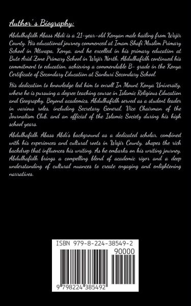 ¿ Author' s Biography: Abdulhafidh Abass Abdi is a 21-year-old Kenyan male hailing from Wajir County. His educational journey commenced at Imam Shafi Muslim Primary School in Mtwapa, Kenya, and he excelled in his primary education at Bute Arid Zone Primary School in Wajir North. Abdulhafidh continued his commitment to education, achieving a commendable B- grade in the Kenya Certificate of Secondary Education at Sankuri Secondary School. His dedication to knowledge led him to enroll In Mount Kenya University, where he is pursuing a degree teaching course in Islamic Religious Education and Geography. Beyond academics, Abdulhafidh served as a student leader in various roles, including Secretary General, Vice Chairman of the Journalism Club, and an official of the Islamic Society during his high school years. Abdulhafidh Abass Abdi's background as a dedicated scholar, combined with his experiences and cultural roots in Wajir County, shapes the rich backdrop that influences his writing. As he embarks on his writing journey, Abdulhafidh brings a compelling blend of academic rigor and a deep understanding of cultural nuances to create engaging and enlightening narratives.
