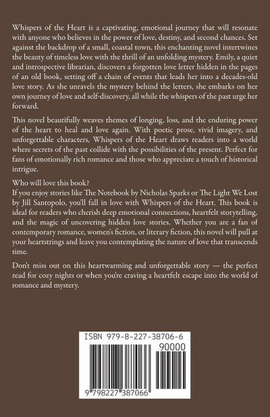 ¿ A forgotten letter. A love lost in time. A destiny waiting to be uncovered. ¿ In the quiet coastal town of Seabrook, librarian Emily Carter stumbles upon a hidden love letter tucked inside the pages of a century-old novel. The words, filled with longing and regret, awaken something deep within her-an unshakable need to uncover the truth behind a romance that never found its ending. As Emily pieces together the fragments of a decades-old love story, she embarks on her own unexpected journey-one that challenges her beliefs about fate, second chances, and the courage it takes to follow the whispers of the heart. With every uncovered clue, the past and present intertwine, revealing secrets, heartbreak, and a love that refuses to be forgotten.