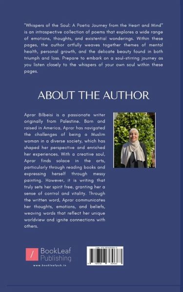 "Whispers of the Soul: A Poetic Journey from the Heart and Mind" is an introspective collection of poems that explores a wide range of emotions, thoughts, and existential wonderings. Within these pages, the author artfully weaves together themes of mental health, personal growth, and the delicate beauty found in both triumph and loss. Prepare to embark on a soul-stirring journey as you listen closely to the whispers of your own soul within these pages.