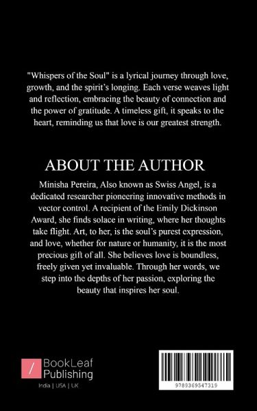 Whispers of the Soul is a lyrical journey through love, growth, and the spirit's longing. Each verse weaves light and reflection, embracing the beauty of connection and the power of gratitude. A timeless gift, it speaks to the heart, reminding us that love is our greatest strength.