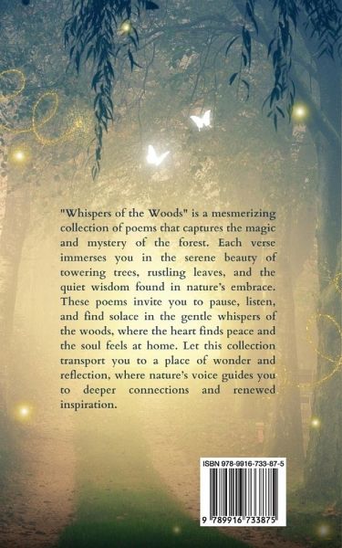 "Whispers of the Woods" is a mesmerizing collection of poems that captures the magic and mystery of the forest. Each verse immerses you in the serene beauty of towering trees, rustling leaves, and the quiet wisdom found in nature's embrace. These poems invite you to pause, listen, and find solace in the gentle whispers of the woods, where the heart finds peace and the soul feels at home. Let this collection transport you to a place of wonder and reflection, where nature's voice guides you to deeper connections and renewed inspiration.