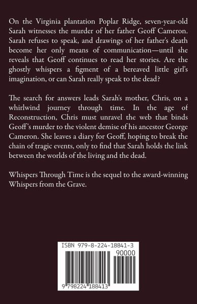 On the Virginia plantation Poplar Ridge, seven-year-old Sarah witnesses the murder of her father Geoff Cameron. Sarah refuses to speak, and drawings of her father's death become her only means of communication-until she reveals that Geoff continues to read her stories. Are the ghostly whispers a figment of a bereaved little girl's imagination, or can Sarah really speak to the dead? The search for answers leads Sarah's mother, Chris, on a whirlwind journey through time. In the age of Reconstruction, Chris must unravel the web that binds Geoff's murder to the violent demise of his ancestor George Cameron. She leaves a diary for Geoff, hoping to break the chain of tragic events, only to find that Sarah holds the link between the worlds of the living and the dead. Whispers Through Time is the sequel to the award-winning Whispers from the Grave.