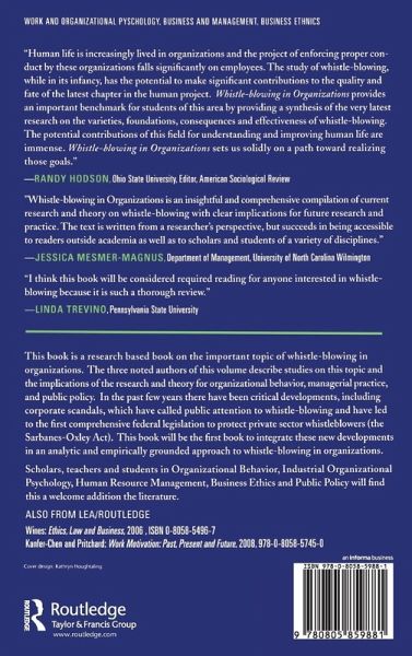 This is a research-based book on whistle-blowing in organizations. The three noted authors describe studies on this important topic and the implications of the research and theory for organizational behavior, managerial practice, and public policy. In the past few years there have been critical developments, including corporate scandals, which have called public attention to whistle-blowing and have led to the first comprehensive federal legislation to protect private sector whistle-blowers (the Sarbanes-Oxley Act). This book is the first to integrate these new developments in an analytic and empirically grounded approach to whistle-blowing in organizations.