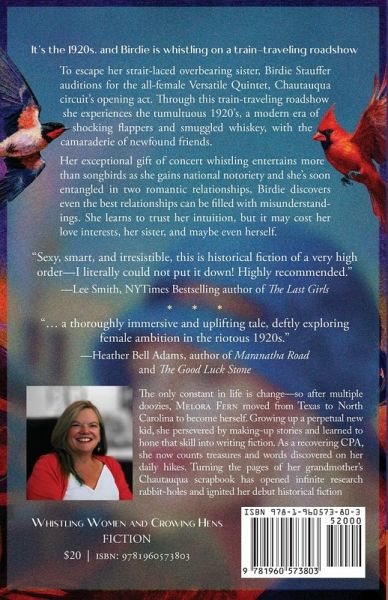 To escape her strait-laced overbearing sister, Birdie Stauffer auditions for the all-female Versatile Quintet, Chautauqua circuit's opening act. Through this train-traveling roadshow she experiences the tumultuous 1920's, a modern era of shocking flappers and smuggled whiskey, with the camaraderie of newfound friends. Her exceptional gift of concert whistling entertains more than songbirds as she gains national notoriety and she's soon entangled in two romantic relationships- one with a dapper circuit manager, the other her fellow pianist. Accompanied by four other musicians⎯a slang slinging flapper, a confident girl-next-door, a tight-lipped loner, and a virtuoso sapphic⎯and following a series of traumatic events, Birdie discovers even the best relationships can be filled with misunderstandings. As she learns to trust her intuition, she finds it may cost her love interests, her sister, and maybe even herself.