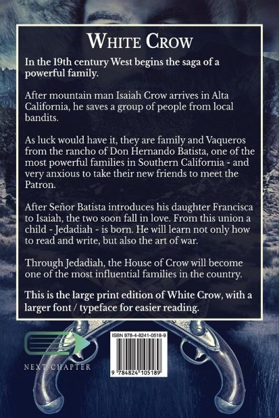 In the 19th century West begins the saga of a powerful family. After mountain man Isaiah Crow arrives in Alta California, he saves a group of people from local bandits. As luck would have it, they are family and Vaqueros from the rancho of Don Hernando Batista, one of the most powerful families in Southern California - and very anxious to take their new friends to meet the Patron. After Señor Batista introduces his daughter Francisca to Isaiah, the two soon fall in love. From this union a child - Jedadiah - is born. He will learn not only how to read and write, but also the art of war. Through Jedadiah, the House of Crow will become one of the most influential families in the country. This is the large print edition of White Crow, with a larger font / typeface for easier reading.