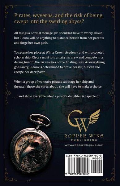 Pirates, wyverns, and the risk of being swept into the swirling abyss? All things a normal teenage girl shouldn't have to worry about, but Cleora will do anything to distance herself from her parents and forge her own path. To secure her place at White Crown Academy and win a coveted scholarship, Cleora must join an airship crew and compete in a daring hunt to the far reaches of the floating isles. As everything goes awry, Cleora is determined to prove herself, but can she escape her dark past? When a group of wannabe pirates sabotage her ship and threaten those she cares about, she will have to make a choice. . . . and show everyone what a pirate's daughter is capable of.