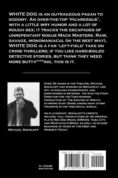WHITE DOG is a homo-erotic crime thriller that's going to slam you up-against-the-wall. Enter the world of Mack Masters as he thumbs his nose at authority and puts the "fuck" back in "fuck you". If that doesn't scare you, stick around as he becomes tangled in a web woven by powerful unknown forces. Will he be pulled down, or will he turn the tables on his pursuers? Sokoloff transports readers to a primal plane where the vicious but wholly human psychopath, Masters, makes perfect sense. Artfully written and threaded with challenging imagery, WHITE DOG savagely brings erotic fiction to a new level.