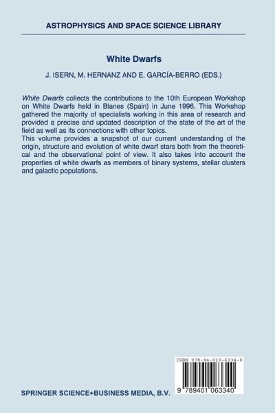 I. Structure and Evolution.- The empirical white dwarf mass-radius relation.- What we have learned about white dwarfs from studies of novae.- The redistribution of carbon and oxygen in crystallizing white dwarfs.- The cooling of white dwarfs and their internal composition.- Theoretical models of white dwarfs with helium-rich interiors.- The electrostatic screening of thermonuclear reactions in astrophysical plasmas.- The possible white dwarf-neutron star connection.- The impact of evolutionary envelope masses on the evolution of white dwarfs.- The progenitors of high-mass white dwarfs.- The multiperiodic, short-period variations of WZ Sge.- Limits on gravities of evolved stars, from infrared photometry and binary companions.- Rotation: CO white dwarfs near the Chandrasekhar limiting mass.- The Accretion-Induced Collapse of white dwarfs revisited in 3D.- II. Luminosity Functions and Populations.- Towards a luminosity function of hot DA white dwarfs.- White dwarfs in M67.- Monte Carlo simulations of the kinematics and luminosity function of white dwarfs.- Monte Carlo simulations of the white dwarf population and luminosity function.- Halo white dwarfs: a conservative point of view.- Halo white dwarfs: a non conventional scenario.- HST observations of white dwarfs in the globular cluster NGC 6397.- The distance and age of the globular cluster NGC 6752 measured by HST observations of cluster and field white dwarfs.- DA white dwarfs in the Montréal-Cambridge-Tololo survey.- Cool white dwarf survey using stacked digitised Schmidt plates.- III. Atmospheres.- Chemical evolution of cool white dwarf's atmospheres.- The chemical evolution of white dwarf stars: what the observations tell us.- A critical look at the question of thick vs thin hydrogen and helium envelopes in whitedwarfs.- Polyatomic carbon molecules in very cool helium-rich white dwarfs.- Analysis of optical, UV and EUV observations of G 191-B2B.- New results on PG 1159 stars and ultrahigh-excitation DO white dwarfs.- Non-LTE analyses of DO white dwarfs.- New spectral analyses of pre-white dwarfs.- The sphericity effects in the NLTE model atmospheres of white dwarfs.- Heavy elements in white dwarf envelopes.- Lyman spectra of hot DA white dwarfs.- Diffusion of silicon in the envelopes of hot DA white dwarfs.- Time-dependent diffusion calculations for hot pre-white dwarfs.- Evolutionary calculations of carbon dredge-up in helium envelope white dwarfs.- Analysis of optical and ultraviolet spectroscopy of the DAZ white dwarf G 74-7.- Modeling extreme ultraviolet spectra of white dwarfs with high-metallicity LTE models.- Extreme ultraviolet spectroscopy of EUVE J0720-317 and EUVE J0723-277.- A new dithered EUVE spectrum of PG 1234+482.- Line of sight H and He ionization fractions in the local interstellar medium.- An instrument for observations of EUV opacity sources in G 191-B2B.- Metals in the variable DA G 29-38.- IV. White Dwarfs in Binaries.- In search of the double degenerate progenitors of Type Ia Supernovae.- The double degenerate population.- White dwarf+M dwarf systems: a new infrared search.- The EC 14026 stars: a new class of pulsating star.- Hot white dwarfs in non-interacting binaries from the ROSAT EUV survey.- HST observations of AM Canum Venaticorum.- Effects of irradiation on the secondary star in a tight binary system, exemplified by AM Canum Venaticorum.- White dwarfs in AM Herculis systems.- HST synthetic spectral analysis of U Gem in early and late quiescence: a heated white dwarf and accretion belt.- WFPC2 observations of Procyon B.- Extreme ultravioletlight curve and phase-resolved spectroscopy of the hot white dwarf in V 471 Tauri.- Unique white dwarfs accompanying recycled pulsars.- Merging of different mass ratio white dwarfs: first moments of the 0.4-1.2 M? case.- V. Magnetic White Dwarfs.- New results of magnetic white dwarf spectroscopy.- 1-D and 2-D calculations of dynamo-generated magnetic fields in white dwarfs.- Magnetic field survey of DC white dwarfs.- New IUE-spectra of the magnetic white dwarf Grw +70°8247 and their interpretation.- VI. Pulsating White Dwarfs.- Convection and the ZZ Ceti instability strip.- WET observations of the DAV variable HL Tau 76: first results.- Preliminary asteroseismology of G 29-38.- Recent advances in the theoretical determination of the ZZ Ceti instability strip.- Cool DAV asteroseismology.- Overstability of g-modes in ZZ Ceti variables.- A continuing spectroscopic study of the instability strip of the pulsating DB (V 777 Her) white dwarfs: the view in the optical.- The potential of asteroseismology for hot, B subdwarfs: a new class of pulsating stars?.- Modeling time-resolved spectra of ZZ Ceti stars.- Discovery of two new ZZ Ceti variables.- Non-pulsating DA white dwarfs in the DAV region.