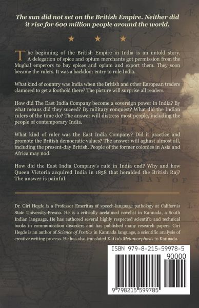 White Eclipse tells the fictionalized history of the forced and fateful interactions between the British of the East India Company and the people of India in the late 18th and early 19th centuries. The sun didn't set on the British Empire, but it didn't rise for millions of people around the world. It's a novel of conflicted and complex individuals, both men and women, Indian and British. The British Commissioner Shaw's corrupt politics was complicated by his wife's love for India and the Indians, and her sense of justice and equality. Conspiring with the Company officials, the powerful and the rich Indians oppressed and exploited the poor and betrayed their own country. Teenage girls were regularly kidnapped and committed to the British army brothels where a ghastly, crude, and humiliating medical examination of girls held naked in suspended wire cages was done every month. Even in this dreadful place, intense love blossomed between a British army Captain and a teenage widow, although he finally betrays her. This may be the first novel to recreate the story of the first Wahhabi movement against the British India. The British considered the Wahhabis terrorists, perhaps the first group so characterized in world history. A Muslim teenager who had supported the Wahabis fighting the British in the present-day Afghanistan was captured and sentenced to death for sedition but commuted to life in an Andaman prison. Another love story blossoms in this unlikely place. The novel is also a story of heart-warming kindness from an English girl, an 8-year-old Emily who smuggled food from her kitchen to her beloved Indian friends who were imprisoned in their own home for nonpayment of a debt. The little girl confronted the Commissioner and got her Indian friends released from their home imprisonment. Eventually, Emily marries the Indian couple's son. Deadly famines, occurring with dreadful frequency, were a feature of the East India Company rule of India. Indian and Irish famines of the 19th century echo each other in the novel. Even during famines, the British had exported large quantities of food grains from India to England. In an earlier famine, Helen had organized a relief program to feed the hungry. But in a subsequent famine, both her husband and the Governor-General stopped her in her tracks. She then became a horrified witness to the harrowing effects of her husband's Malthusian approach to managing the famines. Millions of Indians died on the streets. Helen left her husband and returned to England. His wife's departure forced the Commissioner to face not only his own ruthlessness but also his vulnerabilities that he never thought he had. The Governor declared that Shaw had gone insane and confined him to a small bungalow in Darjeeling. The British slave trade on the Indian subcontinent echoes the African slave trade by the Europeans and the Americans. As under several colonial empires, Indian farmers were captured and sent to Caribbean islands where they worked as slaves on British sugarcane plantations. Hearing the heartbreaking news that her husband had been confined as an insane, Helen returned to India and took her husband home. In 1857, the Indian soldiers of the British Army rebelled against the Company rule. The soldiers killed many British men, women, and children. The company took brutal revenge against the Indian people, especially against the Indian soldiers of its own army. They tied solders into the mouths of cannons and blew them away in public places.