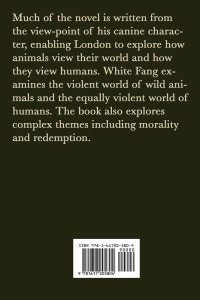 Much of the novel is written from the view-point of his canine character, enabling London to explore how animals view their world and how they view humans. White Fang examines the violent world of wild animals and the equally violent world of humans. The book also explores complex themes including morality and redemption.