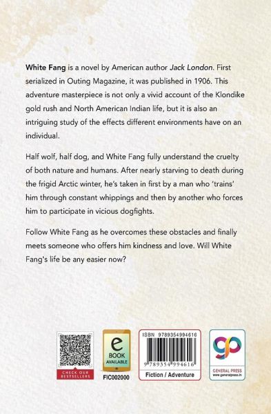'White Fang' is a novel by American author Jack London. First serialized in Outing Magazine, it was published in 1906. This adventure masterpiece is not only a vivid account of the Klondike gold rush and North American Indian life, but it is also an intriguing study of the effects different environments have on an individual. Half wolf, half dog, and White Fang fully understand the cruelty of both nature and humans. After nearly starving to death during the frigid Arctic winter, he's taken in first by a man who 'trains' him through constant whippings and then by another who forces him to participate in vicious dogfights. Follow White Fang as he overcomes these obstacles and finally meets someone who offers him kindness and love. Will White Fang's life be any easier now?