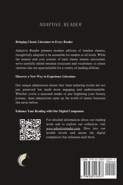Adaptive Reader: Empowering Every Student Through Accessible Reading Adaptive Reader is committed to making reading accessible to all students, regardless of linguistic or neurological differences. Our mission is to provide high-quality, inclusive educational materials that support learning in diverse classroom environments. Each Adaptive Reader book is uniquely formatted in multiple reading levels, making complex texts accessible to students at any stage of their learning journey. Our leveled system includes:Original: The text as published, preserving full complexity. Gold: Reduced text complexity by 2-3 grade levels for enhanced understanding. Silver: A further reduction of 4-6 grade levels for deeper comprehension support. Bronze: Designed for students with acute needs, targeting a second-grade reading level. These levels are color-coded for easy navigation while maintaining student dignity and privacy. Each title is also available in multiple languages, allowing students to read side-by-side versions of the text in their preferred language and level, facilitating bilingual and multilingual education. Note: Digital access and audio companions are not included with paperback purchases unless otherwise specified at the time of sale. To explore our digital and audio offerings, please contact us directly or visit our website.