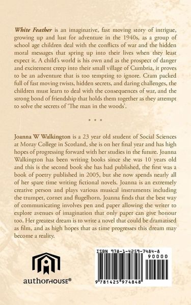 White Feather is an imaginative, fast moving story of intrigue, growing up and lust for adventure in the 1940s, as a group of school age children deal with the conflicts of war and the hidden moral messages that spring up into their lives when they least expect it. A child's world is his own and as the prospect of danger and excitement creep into their small village of Cumbria, it proves to be an adventure that is too tempting to ignore. Cram packed full of fast moving twists, hidden secrets, and daring challenges, the children must learn to deal with the consequences of war, and the strong bond of friendship that holds them together as they attempt to solve the secrets of 'The man in the woods'.