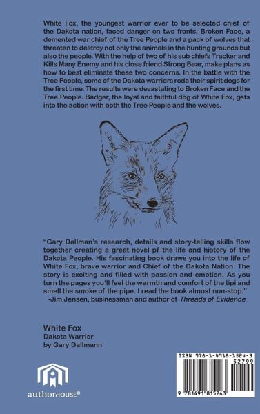 This is a story about a warrior of the People, the Dakota nation. After extensive research, Gary Dallmann chose to write a story that recounts the exploits of White Fox, a warrior who was elevated to chief of the Dakota nation at the young age of twenty eight. As chief, he faced many challenges. This kind, intelligent man proved to be the right choice since he had the welfare of his people paramount in his mind. This is also a gripping tale of misplaced revenge against White Fox by Broken Face, a fierce warrior of the Tree People. His obsession ended the lives of many warriors. Worry over a demented enemy would have been sufficient to age a seasoned chief but to make things worse White Fox's spirit helper sent a message warning him of a dangerous and seemingly demonic pack of wolves invading the Dakota hunting grounds. The wolves were killing indiscriminately and their evil sport was not restricted to animals.