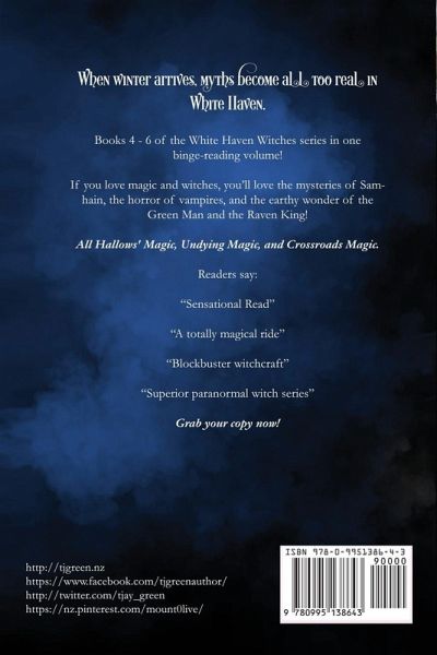 When winter arrives, myths become all too real in White Haven. Books 4 - 6 of the White Haven Witches series in one binge-reading volume! If you love magic and witches, you'll love the mysteries of Samhain, the horror of vampires, and the earthy wonder of the Green Man and the Raven King! All Hallows' Magic, Undying Magic, and Crossroads Magic. Readers say: "Sensational Read" "A totally magical ride" "Blockbuster witchcraft" "Superior paranormal witch series" ¿Grab your copy now!