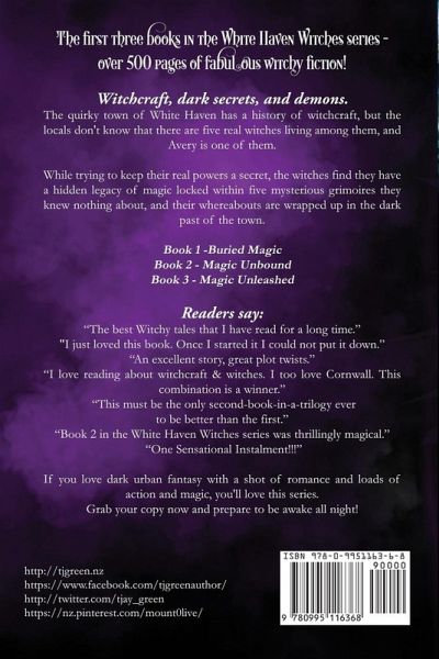 Welcome to White Haven, where the witches keep their secrets close.The quirky town of White Haven has a history of witchcraft, but the locals don't know that there are five real witches living among themWhile trying to keep their powers a secret, the witches find they have a hidden legacy of magic locked within five mysterious grimoires they knew nothing about, and their whereabouts are wrapped up in the dark past of the town.Their hunt for the truth puts them in more danger than they bargained for.But their enemies underestimate them, because they won't stop looking, whatever happens.Life in White Haven is about to get a whole lot more interesting. Book 1 -Buried MagicBook 2 - Magic UnboundBook 3 - Magic Unleashed If you love dark urban fantasy with a shot of romance and loads of action and magic, you'll love this series.Grab your copy now and prepare to be awake all night!