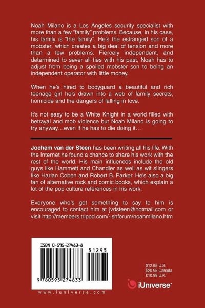 Noah Milano is a Los Angeles security specialist with more than a few "family" problems. Because, in his case, his family is "the family." He's the estranged son of a mobster, which creates a big deal of tension and more than a few problems. Fiercely independent, and determined to sever all ties with his past, Noah has to adjust from being a spoiled mobster son to being an independent operator with little money.