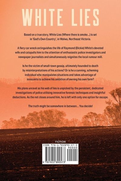 White Lies is a tale that was originally told to the author as a ghost story. The story was provided as an explanation for the spooky atmosphere of the house which was built for Dickie and Elizabeth White in 1933, and in which Janice found herself as a tenant almost seventy years later. The intriguing tale created a desire to find out more about the shadowy protagonist of the ghost story, Dickie White. Over the subsequent years, she spoke to a plethora of actual- and second-hand witnesses to the 'Walwa Tragedy'. She sourced documents and records from the Trove website (hosted by the National Library of Australia) and the archives of the Public Records Office of Victoria, accumulating a mass of research material. Janice pored over the grainy black and white images. She deciphered the smudgy old newspaper articles and ancient documents, trying to fathom the depths of the story and details of the characters. The demands of family and farm left little time for writing and the story remained stalled in her mind for decades. The novel failed to materialize. In December 2019, just short of the 80th anniversary of the final event of the Dickie White Saga, the Black Summer Bushfires stormed through the Upper Murray, and the house, centre stage to the saga, was destroyed. The disaster was a profound echo of the past: In January 1939, the Black Friday Bushfires, fires of a similar magnitude and with similar disruptive impacts on individuals, property, environment, and community bonds, ripped through Walwa and the rest of the Upper Murray. In 1939, the repercussions of the disaster led to the sudden and tragic demise of first, Elizabeth White and subsequently, her husband, a man known to the Walwa community as Raymond / Richard /Dickie White. He was a man with a mysterious past, the focus of small-town rumour and gossip. The similarity of events and fractured community bonds in the aftermath of a massive bushfire disaster in 1939, and then again in 2019/20, caused Janice to look at the mystery of Dickie White with fresh eyes. She took it as a sign to stop procrastinating and turn history and folklore into a novel. White Lies - Where There Is Smoke is the author's interpretation of the 'Dickie White Saga' or 'Walwa Tragedy', as the newspaper journalists of 1939 dubbed the sequence of events. The novel is based on fact but re-imagined with dialogue and descriptions which may often flagrantly deviate from reality and venture into creativity in the interests of continuity and colour. Many of the characters have the names of actual witnesses to the event as detailed in inquest records and local history, but some are pure imagination, as is all of the dialogue.The story is an intriguing mystery laced with local history and firmly set in the location of Walwa, in the Upper Murray. The tale hooks the reader from the opening chapter making it very difficult to put down, so ensure you clear your schedule before opening the book.