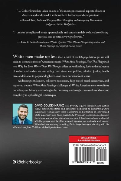 White men make up less than a third of the US population, yet we still seem to dominate most of American society. White Male Privilege: How This Happened and Why It's Even Worse Than We Thought offers an unflinching look at the influence of racism and sexism on everything from American politics, criminal justice, health care, and finance to popular dog breeds and even our own front lawns. Addressing entitlement, collective narcissism, deep-rooted racial insecurities, and repressed trauma, White Male Privilege challenges all White American men to confront ourselves, our history, and to begin the necessary and tough conversations about our complicity in upholding the status quo.