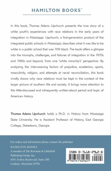 In this book, Thomas Adams Upchurch presents the true story of a white youth's experiences with race relations in the early years of integration in Mississippi. Upchurch, a first-generation product of the integrated public schools in Mississippi, describes what it was like to be white in a public school that was 70% black. The book offers a glimpse into the triumphs, challenges, and failures of integration in the 1970s and 1980s and beyond, from one 'white minorityOs' perspective. By analyzing the factors of prejudice, academics, sports, masculinity, religion, and attempts at racial reconciliation, this book vividly shows why race relations must be kept in the context of the larger picture of southern life and society. It hopes to bring more attention to this little-discussed and infrequently written-about period and topic of American history.