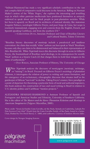 "Isfahani-Hammond has made a very significant scholarly contribution to the vast and complex field of comparative racial discourse in the Americas. Riffing on Norman Mailer's notion of the 'White Negro,' she explores the interesting and troubling ways in which white patrician intellectuals have positioned themselves as uniquely endowed to speak about and for black people in post-plantation societies. While her focus is squarely on Brazil and its architects of national identity, like statesman Joaquim Nabuco, sociologist Gilberto Freyre, and poet Jorge de Lima, her scope is resolutely transnational, engaging texts and contexts from the English, French, and Spanish-speaking Caribbean, and from the southern US."