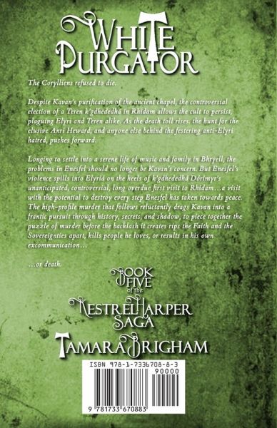 The Corylliens refused to die. Despite Kavan's purification of the ancient chapel, the controversial election of a Teren k'gdhededhá in Rhidam allows the cult to persist, plaguing Elyri and Teren alike. As the death toll rises. the hunt for the elusive Anri Heward, and anyone else behind the festering anti-Elyri hatred, pushes forward. Longing to settle into a serene life of music and family in Bhryell, the problems in Enesfel should no longer be Kavan's concern. But Enesfel's violence spills into Elyriá on the heels of k'gdhededhá Dórímyr's unanticipated, controversial, long overdue first visit to Rhidam...a visit with the potential to destroy every step Enesfel has taken towards peace. The high-profile murder that follows reluctantly drags Kavan into a frantic pursuit through history, secrets, and shadow, to piece together the puzzle of murder before the backlash it creates rips the Faith and the Sovereignties apart, kills people he loves, or results in his own excommunication... ...or death.