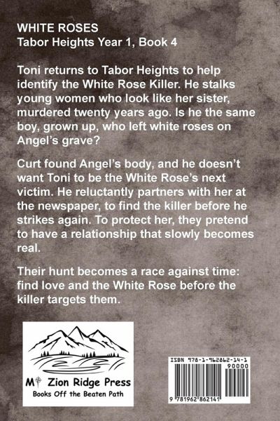 Toni returns to Tabor Heights to help identify the White Rose Killer. He stalks young women who look like her sister, murdered twenty years ago. Is he the same boy, grown up, who left white roses on Angel's grave? Curt found Angel's body, and he doesn't want Toni to be the White Rose's next victim. He reluctantly partners with her at the newspaper, to find the killer before he strikes again. To protect her, they pretend to have a relationship that slowly becomes real. Their hunt becomes a race against time: find love and the White Rose before the killer targets them.