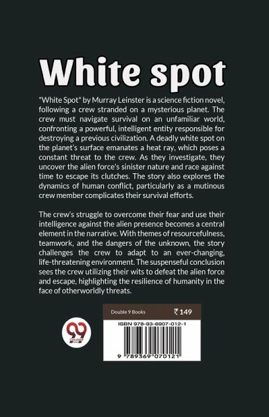 "White Spot" by Murray Leinster is a science fiction novel, following a crew stranded on a mysterious planet. The crew must navigate survival on an unfamiliar world, confronting a powerful, intelligent entity responsible for destroying a previous civilization. A deadly white spot on the planet's surface emanates a heat ray, which poses a constant threat to the crew. As they investigate, they uncover the alien force's sinister nature and race against time to escape its clutches. The story also explores the dynamics of human conflict, particularly as a mutinous crew member complicates their survival efforts. The crew's struggle to overcome their fear and use their intelligence against the alien presence becomes a central element in the narrative. With themes of resourcefulness, teamwork, and the dangers of the unknown, the story challenges the crew to adapt to an ever-changing, life-threatening environment. The suspenseful conclusion sees the crew utilizing their wits to defeat the alien force and escape, highlighting the resilience of humanity in the face of otherworldly threats.