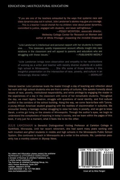 Veteran teacher Julie Landsman leads the reader through a day of teaching and reflection about her work with high school students who are from a variety of cultures. She speaks honestly about issues of race, poverty, institutional responsibility, and white privilege by engaging the reader in the experiences of a day in the classroom with some of her remarkable students. Throughout the day, we meet bigotry head-on, struggle with questions of racial identity, and find cultural conflict in the corridors of the school building. Along the way, we come face to face with Tyrone, a young African-American student grappling with the realities of discrimination in suburbia. We encounter Sheila, a teenage mother struggling to raise her baby in poverty, and we get to know Sarah, a white girl living on the streets of Minneapolis. Through the author's eyes, we begin to understand the complexities of teaching in today's society and we learn within the pages of this book, if only just for a moment, what it feels like to be the other.