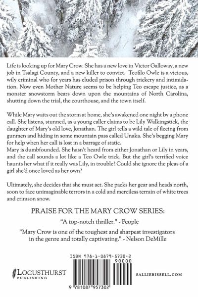 Life is looking up for Mary Crow. She has a new love in Victor Galloway, a new job in Tsalagi County, and a new killer to convict. Teofilo Owle is a vicious, wily criminal who for years has eluded justice through trickery and intimidation. Now even Mother Nature seems to be helping Teo escape the law, as a monster snowstorm bears down upon the Appalachian mountains. As the blizzard roars in, Mary's awakened by a strange phone call. She listens, stunned, as a young caller claims to be Lily Walkingstick, the daughter of Mary's old love, Jonathan. The girl tells a wild tale of fleeing from gunmen and hiding in a mountain pass called Unaka. She's begging Mary for help when her call is lost in a barrage of static. Mary is dumbfounded. She hasn't heard from either Jonathan or Lily in years, and the call smacks of a Teo Owle trick. But the girl's terrified voice haunts her ¿ what if it really was Lily, in trouble? Can she ignore the pleas of a girl she'd once loved as her own? Ultimately, Mary decides that she must act. Quickly packing her gear, she heads into the mountains. Though she finds Lily, the girl's rescue is far from assured. Predators are stalking Lily and moving in for the kill. Soon Mary must keep them both alive as they pick their way through the white trees and crimson snow.
