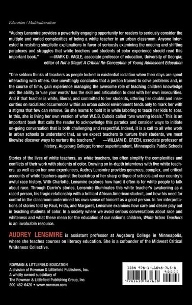 Stories of the lives of white teachers, as white teachers, too often simplify the complexities and conflicts of their work with students of color. Drawing on in-depth interviews with five white teachers, as well as on her own experiences, Audrey Lensmire provides generous, complex, and critical accounts of white teachers, against the backdrop of her sharp critique of schools and our country's awful race history.
