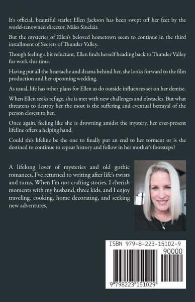 It's official, beautiful starlet Ellen Jackson has been swept off her feet by the world-renowned director, Miles Sinclair. But the mysteries of Ellen's beloved hometown seem to continue in the third installment of Secrets of Thunder Valley. Though feeling a bit reluctant, Ellen finds herself heading back to Thunder Valley but for work this time. Having put all the heartache and drama behind her, she looks forward to the film production and their upcoming wedding. As usual, life has other plans for Ellen as do outside influences set on her demise. When Ellen seeks refuge, she is met with new challenges and obstacles. But what threatens to destroy her the most is the suffering and eventual betrayal of the person closest to her. Once again, feeling like she is drowning amidst the mystery, her ever-present lifeline offers a helping hand. Could this lifeline be the one to finally put an end to her torment or is she destined to continue to repeat history? Follow in her mother's footsteps.