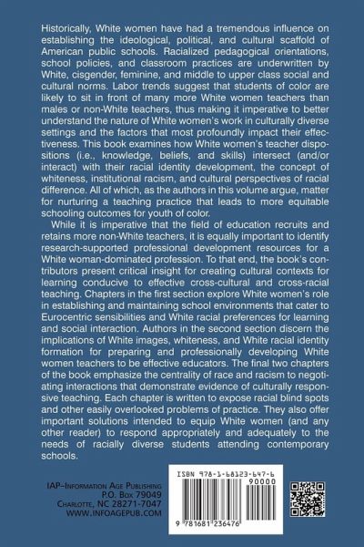A volume in Contemporary Perspectives on Access, Equity, and Achievement Historically, white women have had a tremendous influence on establishing the ideological, political, and cultural scaffold of American public schools. Pedagogical orientations, school policies, and classroom practices are underwritten by white, cisgender, feminine, and middle to upper class social and cultural norms. Labor trends suggest that students of color are likely to sit in front of many more white women teachers than males or non¿white teachers, thus making it imperative to better understand the nature of white women's work in culturally diverse settings and the factors that most profoundly impact their effectiveness. This book examines how white women teacher dispositions (i.e. knowledge, beliefs, and skills) intersect (and/or interact) with their racial identity development, the concept of whiteness, institutional racism, and cultural perspectives of racial difference. All of which, as the authors in this volume argue, matter for nurturing a teaching practice that leads to more equitable schooling outcomes for youth of color. While it is imperative that the field of education recruits and retains more nonwhite teachers, it is equally important to identify research¿supported professional development resources for a white woman¿dominated profession. To that end, the book's contributors present critical insight for creating cultural contexts for learning conducive to effective cross¿cultural and cross¿racial teaching. Chapters in the first section explore white women's role in establishing and maintaining school environments that cater to Eurocentric sensibilities and white racial preferences for learning and social interaction. Authors in the second section discern the implications of white images, whiteness, and white racial identity formation for preparing and professionally developing white women teachers to be effective educators. Chapters in the third section of the book emphasize the centrality of race in negotiating academic interactions that demonstrate culturally responsive teaching. Each chapter in this book is written to investigate the intersectionality of race, cultural responsive pedagogies, and teaching identities as it relate to teaching in multiethnic environments. In addition, the book offers solution¿oriented practices to equip white women (and any other reader) to respond appropriately and adequately to the needs of racially diverse students in American schools.
