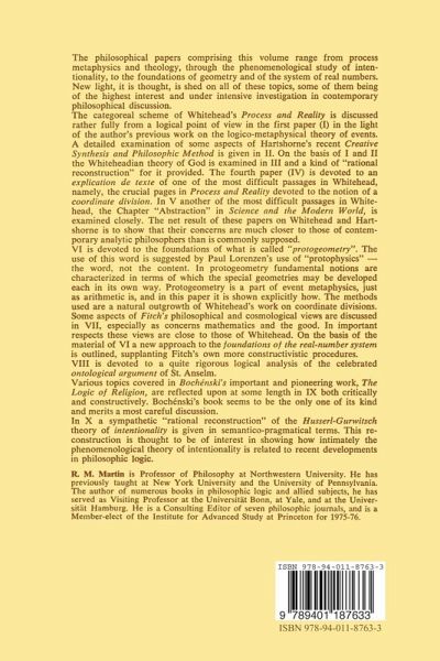 The philosophical papers comprising this volume range from process metaphysics and theology, through the phenomenological study of intentionality, to the foundations of geometry and of the system of real numbers. New light, it is thought, is shed on all these topics, some of them being of the highest interest and under intensive investigation in contemporary philosophical discussion. Metaphysi cians, process theologians, semanticists, theorists of knowledge, phenomenologists, and philosophers of mathematics will thus find in this book, it is hoped, helpful materials and methods. The categoreal scheme of Whitehead's Process and Reality is discussed rather fully from a logical point of view in the first paper [I] in the light of the author's previous work on the logico-metaphysical theory of events. The clarification that results is thought to provide a new depth and precision to the problem of interpreting one of the most difficult books in the recent history of metaphysics and cosmol ogy. A detailed examination of some aspects of Hartshorne's recent Creative Synthesis and Philosophic Method is given in II. This book is perhaps the most significant work on process philosophy since Process and Reality itself, and its logical underpinnings thus merit a full critical discussion.