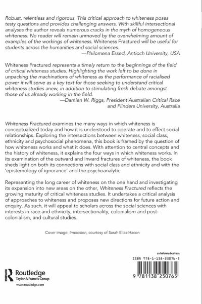 Whiteness Fractured examines the many ways in which whiteness is conceptualized today and how it is understood to operate and to effect social relationships. Exploring the intersections between whiteness, social class, ethnicity and psychosocial phenomena, this book is framed by the question of how whiteness works and what it does. With attention to central concepts and the history of whiteness, it explains the four ways in which whiteness works. In its examination of the outward and inward fractures of whiteness, the book sheds light on both its connections with social class and ethnicity and with the 'epistemology of ignorance' and the psychoanalytic.