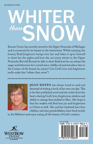Bonnie Turner has recently moved to the Upper Peninsula of Michigan and is enamored by its beauty in the wintertime. While enjoying the beauty, Brad Jorgenson bumps into her and takes it upon himself to show her the sights and how she can enjoy winter in the Upper Peninsula. But will Bonnie be able to show Brad how he can release the anger and bitterness he's carried since childhood and introduce him to the Creator of the beauty he enjoys? Can God's love and forgiveness really make him "whiter than snow"?