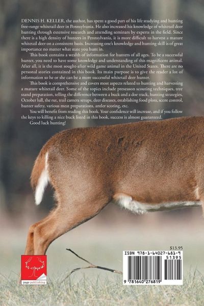 Dennis H. Keller, the author, has spent a good part of his life studying and hunting free-range whitetail deer in Pennsylvania. He also increased his knowledge of whitetail deer hunting through extensive research and attending seminars by experts in the field. Since there is a high density of hunters in Pennsylvania, it is more difficult to harvest a mature whitetail deer on a consistent basis. Increasing one’s knowledge and hunting skill is of great importance no matter what state you hunt in. This book contains a wealth of information for hunters of all ages. To be a successful hunter, you need to have some knowledge and understanding of this magnificent animal. After all, it is the most sought-after wild game animal in the United States. There are no personal stories contained in this book. Its main purpose is to give the reader a lot of information so he or she can be a more successful whitetail deer hunter. This book is comprehensive and covers most aspects related to hunting and harvesting a mature whitetail deer. Some of the topics include preseason scouting techniques, tree stand preparation, telling the difference between a buck and a doe track, hunting strategies, October lull, the rut, trail camera setups, deer diseases, establishing food plots, scent control, hunter safety, various meat preparations, antler scoring, etc. You will benefit from reading this book. Your confidence will increase, and if you follow the keys to killing a nice buck listed in this book, success is almost guaranteed. Good luck hunting!
