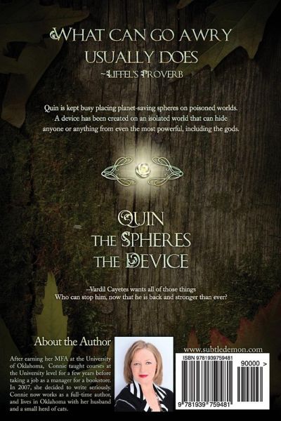 "What can go awry usually does." --Liffel's proverb Quin is kept busy placing planet-saving spheres on poisoned worlds. A Device has been created on an isolated world, which can hide anyone or anything from even the most powerful, including the gods. Quin The spheres The Device Vardil Cayetes wants all these things. Who can stop him, now that he is back and stronger than ever?