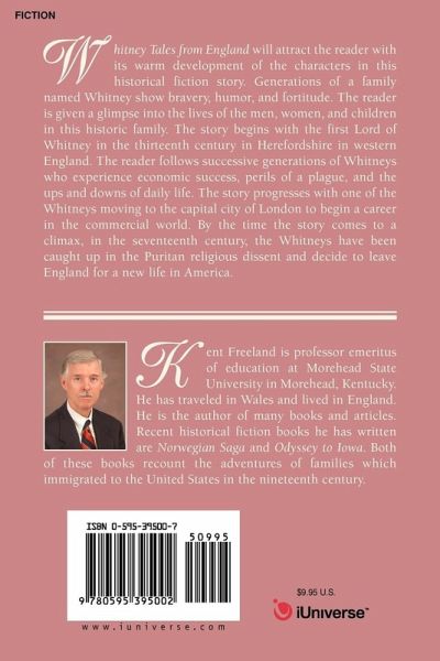 Whitney Tales from England will attract the reader with its warm development of the characters in this historical fiction story. Generations of a family named Whitney show bravery, humor, and fortitude. The reader is given a glimpse into the lives of the men, women, and children in this historic family. The story begins with the first Lord of Whitney in the thirteenth century in Herefordshire in western England. The reader follows successive generations of Whitneys who experience economic success, perils of a plague, and the ups and downs of daily life. The story progresses with one of the Whitneys moving to the capital city of London to begin a career in the commercial world. By the time the story comes to a climax, in the seventeenth century, the Whitneys have been caught up in the Puritan religious dissent and decide to leave England for a new life in America.