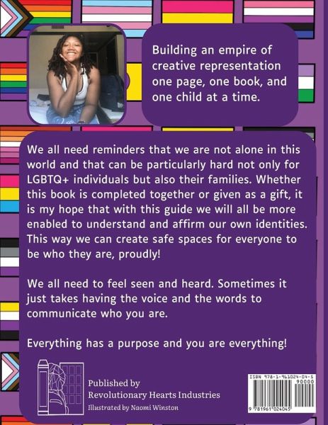 "Who Am I? I Am..." is the 10th coloring book in The Creative Representation Empire coloring book series. The purpose of this coloring book is to provide definitions and words to help individuals identify themselves starting from an understanding of ethnic backgrounds, and pronouns, to sexual orientation, and gender identity. It is our hope by empowering individuals with the verbiage to self-identify we create spaces for people's voices to be heard. This book is also being published on the 10-year anniversary of the author Winston coming out of the closet, which she did at 13. She notes that this book was a resource that she wished she had to find community with other Black and Brown LGBTQ+ community members. The Creative Representation Empire, TCRE, is a line of coloring books and other creative tools used to highlight, educate, and represent various cultures and identities. TCRE directly reflects the children that will color the books through curated photographs of real people to emphasize to children of color that they are not alone in life, their identity struggles, or their dreams. TCRE is a continuously growing catalog of books and tools representing different cultures, lifestyles, and ethnicities.