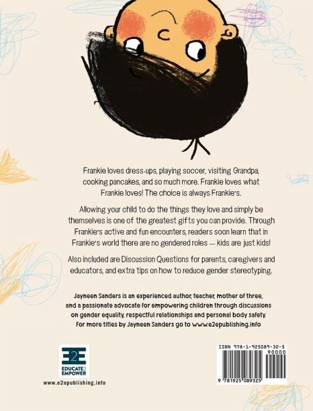 Frankie loves dress-ups, playing soccer, visiting Grandpa, cooking pancakes, and so much more. Frankie loves what Frankie loves! The choice is always Frankie’s. Allowing your child to do the things they love and simply be themselves is one of the greatest gifts you can provide. Through Frankie’s active and fun encounters, readers soon learn that in Frankie’s world there are no gendered roles - kids are just kids! Also included are Discussion Questions for parents, caregivers and educators, and extra tips on how to reduce gender stereotyping. This book has been written to open up a conversation…mehr