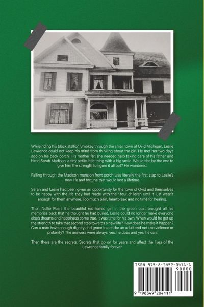 While riding his black stallion Smokey through the small town of Ovid Michigan, Leslie Lawrence could not keep his mind from thinking about the girl. He met her two days ago on his back porch. His mother felt she needed help taking care of his father and hired Sarah Madison, a tiny petite little thing with a big smile. Would she be the one to give him the strength to figure it all out? He wondered. Falling through the Madison mansion front porch was literally the first step to Leslie's new life and fortune that would last a lifetime. Sarah and Leslie had been given an opportunity for the town of Ovid and themselves to be happy with the life they had made with their four children until it just wasn't enough for them anymore. Too much pain, heartbreak and no time for healing. Then Nellie Pearl, the beautiful red-haired girl in the green coat brought all his memories back that he thought he had buried. Leslie could no longer make everyone else's dreams and happiness come true. It was time for his own. When would he get up the strength to take that second step towards a new life? How does he make it happen? Can a man have enough dignity and grace to act like an adult and not use violence or profanity? The answers were always, yes, he does and yes, he can. Then there are the secrets. Secrets that go on for years and affect the lives of the Lawrence family forever.