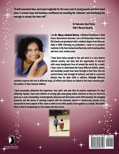 This book is for all parents: those who are pregnant, those who already are gifted with children and those future mothers and fathers just waiting for a special soul to make their life complete. For the latter, this book can be used daily for mediation and as a tool in asking for that special little person to choose us to be their parents. For those who have already been blessed with little ones, this book can be used as a valuable reminder for them as to who they are, where they are and what their purpose in life is. We are so busy reacting to external situations in our ever-changing world that we often forget who we really are, smothering ourselves in a blanket of stress and anxiety over things that don't really matter. The ever-observant child will learn to mimic how we deal with situations, carrying the same heavy blanket with them and can in turn lose track of what really matters, who they are and their real purpose in life. This book is about shedding those unnecessary layers to reveal our true selves so that through successful relationships we can share our love, happiness, peace, truth and strength with each individual we come in to contact with. Please do not underestimate the capabilities of a child. Whether he or she is 6 years old, a newborn baby or a young fetus, they all can hear us and they all feed off the love we show them. Every child, whatever their age, needs us to love them unconditionally, care for them and to be good role models. Practice this by reading the book to your loved ones, wherever they may be. I wish you the very best and I am grateful for this opportunity to share all my love, happiness, and strength with all the parents and children in this world, and beyond. Dr. Vijaya Chetty