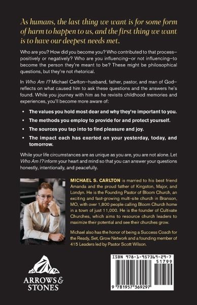 As humans, the last thing we want is for some form of harm to happen to us, and the first thing we want is to have our deepest needs met. Who are you? How did you become you? Who contributed to that process-positively or negatively? Who are you influencing-or not influencing-to become the person they're meant to be? These might be philosophical questions, but they're not rhetorical. In Who Am I? Michael Carlton-husband, father, pastor, and man of God-reflects on what caused him to ask these questions and the answers he's found. While you journey with him as he revisits childhood memories and experiences, you'll become more aware of: The values you hold most dear and why they're important to you. The methods you employ to provide for and protect yourself. The sources you tap into to find pleasure and joy. The impact each has exerted on your yesterday, today, and tomorrow. While your life circumstances are as unique as you are, you are not alone. Let Who Am I? inform your heart and mind so that you can answer your questions honestly, intentionally, and peacefully.